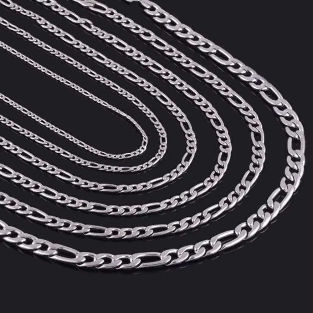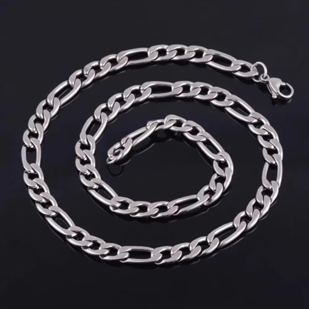 Este colar Figaro de aço inoxidável apresenta uma corrente robusta com padrão 3:1, inspirada no estilo hip-hop, que combina resistência e design contemporâneo. Disponível em várias larguras (3mm a 7,5mm) e comprimentos (51cm a 66cm), oferece versatilidade para diferentes estilos e ocasiões. Fabricado com metal de alta qualidade, é resistente à corrosão e mantém seu brilho natural mesmo com uso frequente, garantindo durabilidade e um visual moderno e sofisticado. Ideal para quem busca uma peça elegante com excelente acabamento e conforto.