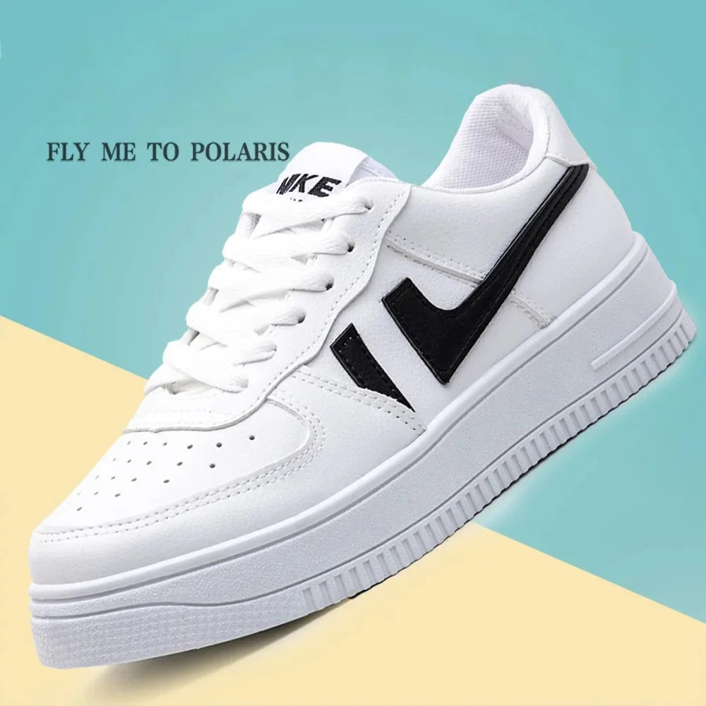 Tênis casual unissex com superfície em couro impermeável, inspirado no estilo Air Force One. Possui palmilha que aumenta a altura, oferecendo discrição e conforto ao mesmo tempo. O solado grosso garante maior durabilidade e absorção de impacto, ideal para uso diário. Design versátil para homens e mulheres, perfeito para quem busca estilo e praticidade em um único calçado.