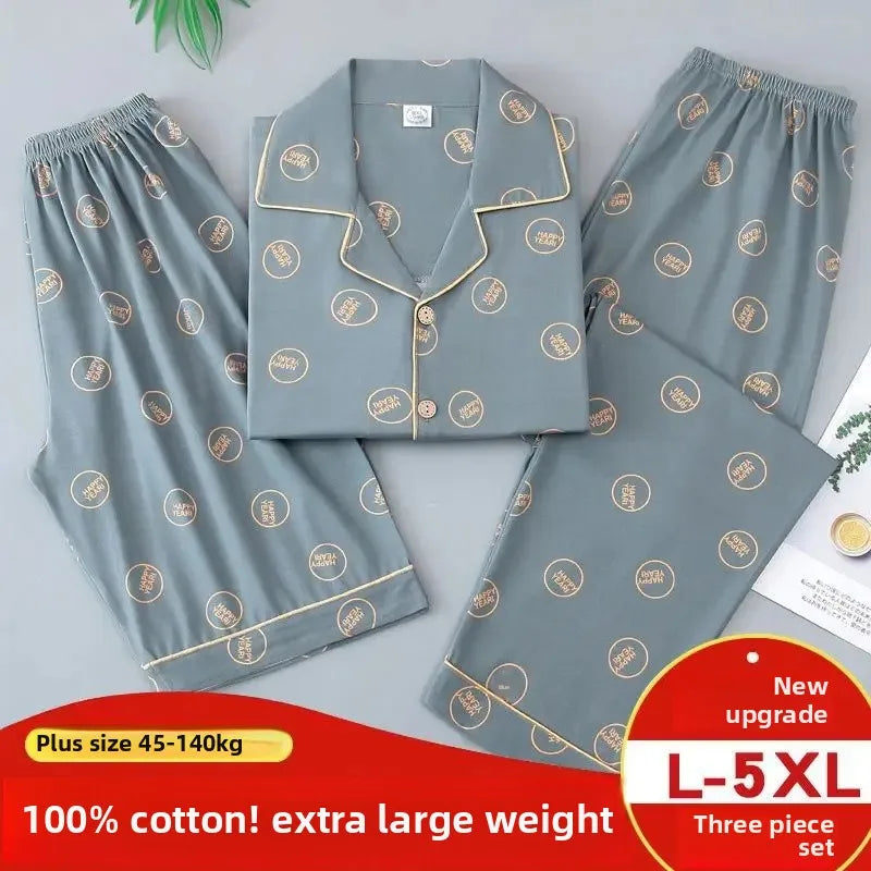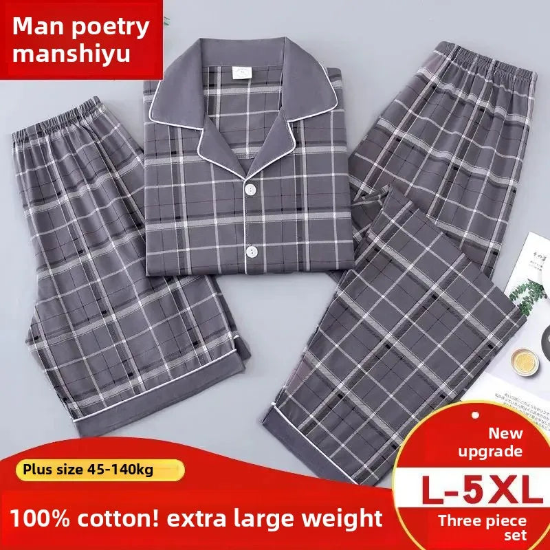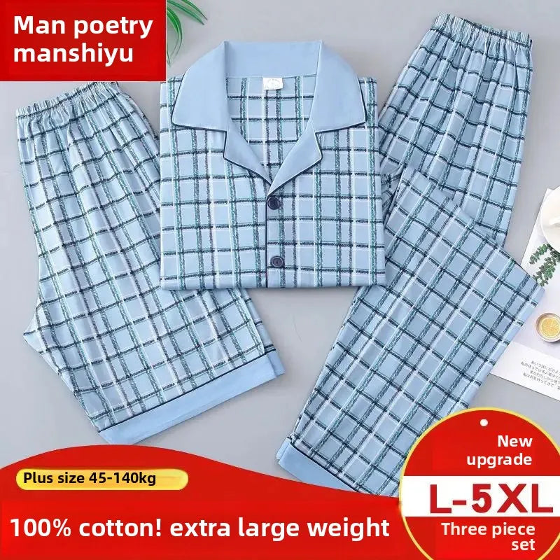 Este pijama masculino de três peças combina conforto e versatilidade com camiseta de manga curta, calça longa e cardigan leve em algodão macio. Ideal para momentos de descanso em casa, seu tecido respirável e tamanhos extra grandes garantem ajuste confortável para diferentes biotipos. O cardigan permite que o conjunto seja usado também em ambientes externos, facilitando sua adaptação a diversas situações. Disponível em várias cores e tamanhos, é uma escolha prática e estilosa para quem busca conforto e funcionalidade.